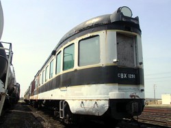 Further, the second folding step was made to operate so now the car is easily accessible from both sides. The Gyralite housing was opened up to replace the closure bolt. After this was done the door was closed and caulked eliminating one important area where water was being admitted into the interior. The old patch repair that was sealed in October had opened up again. The area was again filled and sealed and should now hold better. All windows that needed it were sealed and cracks were duct-taped. Work has progressed nicely on patch-painting rusted areas on the car body. For the upcoming move "Do not hump or kick" warnings were stenciled on. The interior paneling at the smaller hole in the side was removed to inspect the area. It turns out that the former window opening in that area was enlarged vertically sparing the posts. This means that the area will be fairly straightforward to repair, needing only the horizontal members (like for instance the window sill) and the short vertical post under the middle of the window.