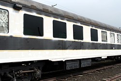 This time I came prepared, with some experience and a plan. I would try for three more windows and do this assembly line style. And it worked. By working on three windows at once, each at different stages of completion, I managed to replace three more tall windows! Now all the (straight) tall windows on the one side have been replaced and the car is starting to look great. I really love the dark tint from the outside. I also met a fellow car owner, Bob McCown, who had just moved his cars to the same facility where St. Nicholas Mountain is parked. Bob, gracefully lend me some professional brass stencils with which I renumbered St. Nick to RPCX 1291, the number she'll be wearing from now on. The RPCX marks are owned by the Railroad Passenger Car Numbering Bureau (RPCNB) of the Railroad Passenger Car Alliance (RPCA). The RPCA provides this service for a nominal fee to members. It provides an affordable way to have your car registered in the railroads' used UMLER/EMIS equipment databases, and is needed to move a car on a first class railroad (and many others). Now St. Nicholas Mountain shows proof of her new ownership.
